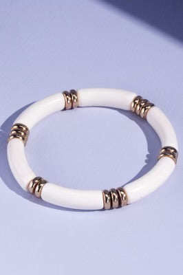 Elevate your wristwear with the "A Little Extra" bracelet, designed to stand out alone or complement any stack. Available in classic black or white, each piece is accented with subtle gold detailing, offering a refined touch that enhances your style effortlessly. Perfect for adding a sophisticated layer to your everyday look.